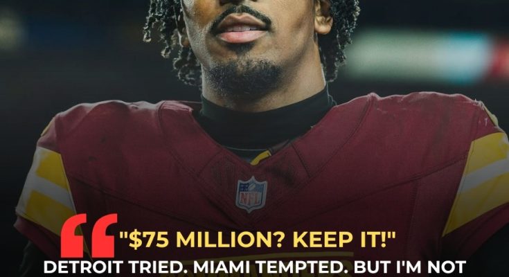 In an NFL dominated by lucrative contracts and flashy moves, Washington Commanders quarterback Jayden Daniels just made a decision that could reshape the way we think about loyalty in the league. In a stunning turn of events, Daniels turned down a combined $75 million offer from two championship-contending teams, the Detroit Lions and the Miami Dolphins, in favor of staying with the Commanders. His decision? A powerful message in a sport where players are often seen chasing the biggest payday.