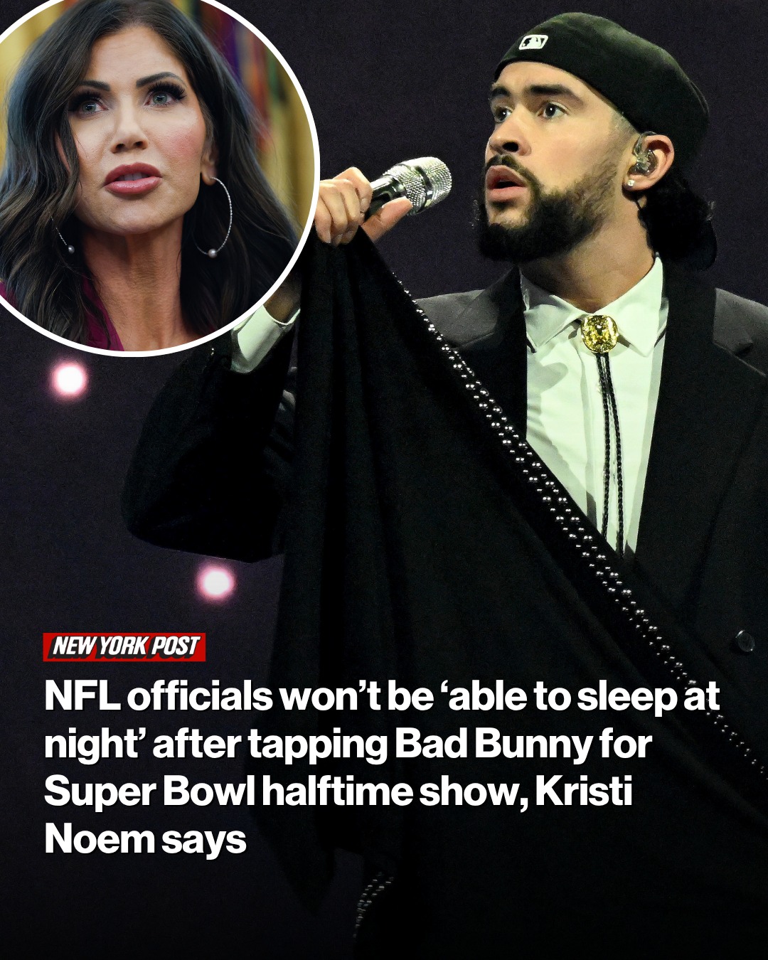 WaSHINGTON — Homeland Security Secretary Kristi Noem said NFL officials won’t be “able to sleep at night” after picking Puerto Rican rapper Bad Bunny — who didn’t host US concerts this year in protest of President Trump’s immigration policies — to headline the in 2026.